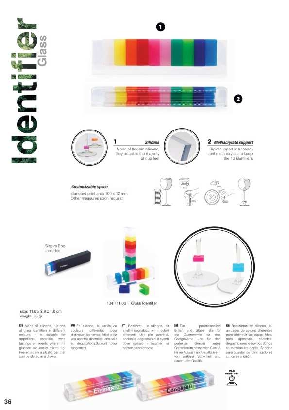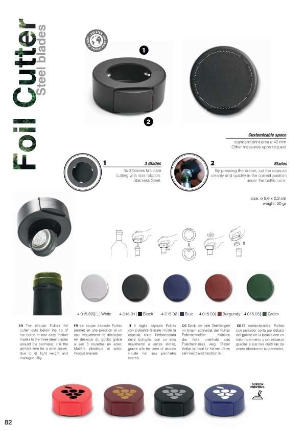 Accesorios como para publicidad de su bodega o Cava como: cortacápsulas, copas, portamenús, portacopas, marcadores de copas, delantales, bolsas para botellas, Drop-Cloth...