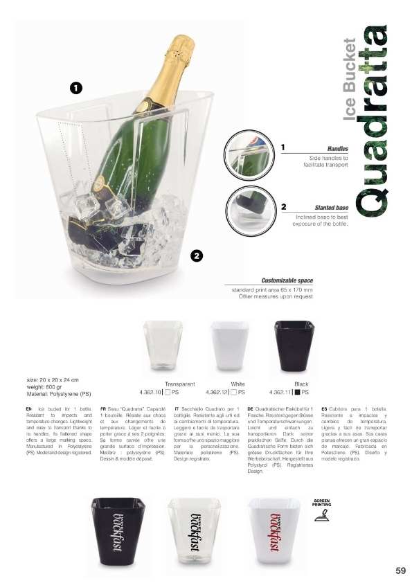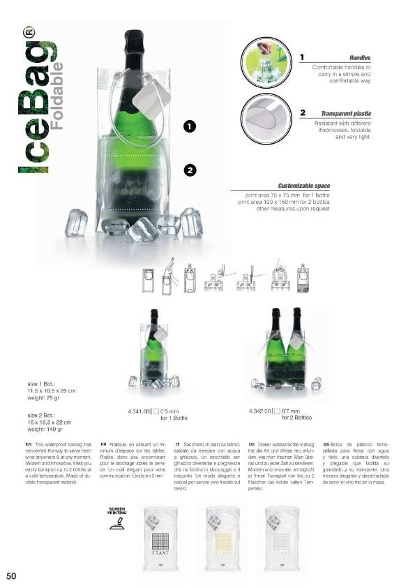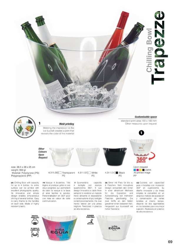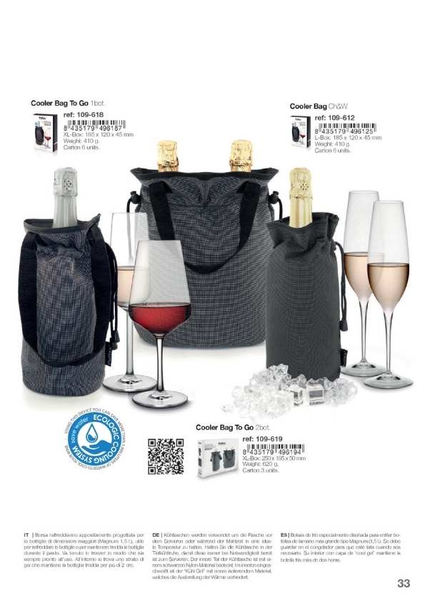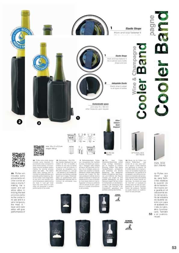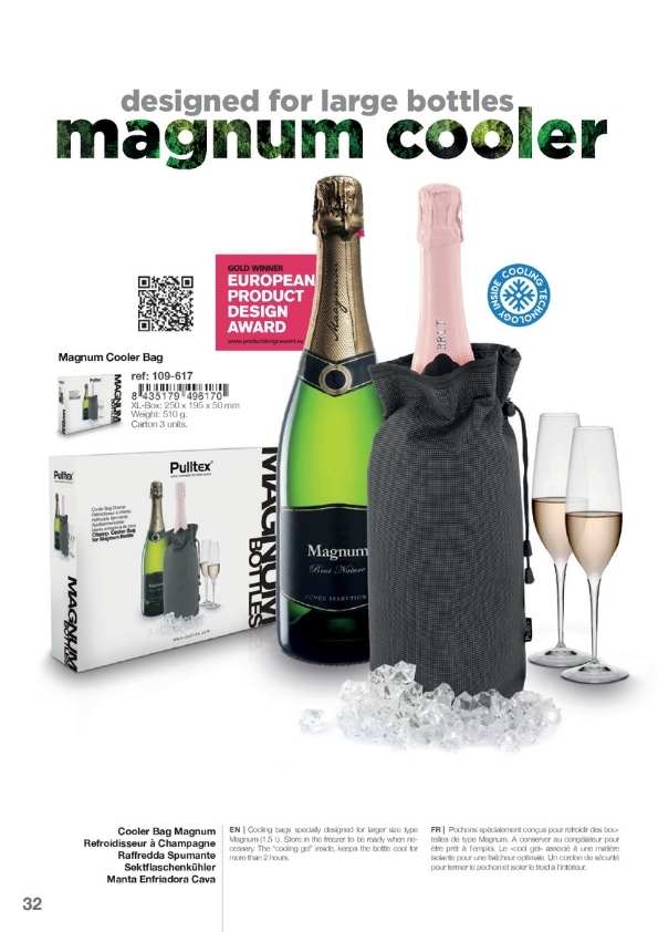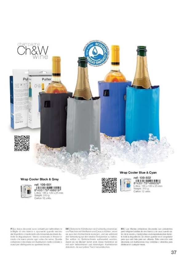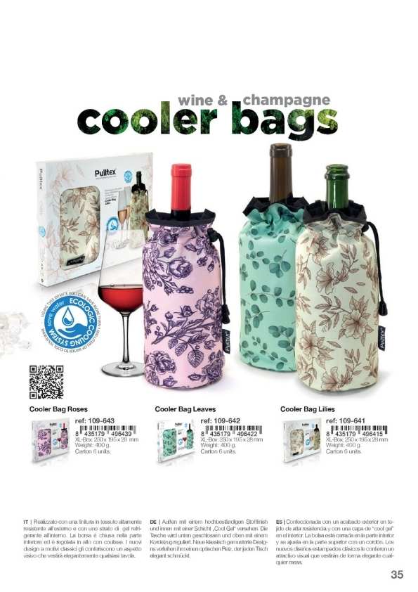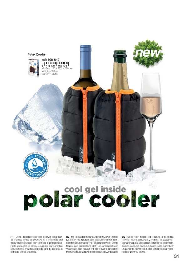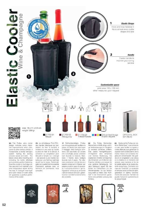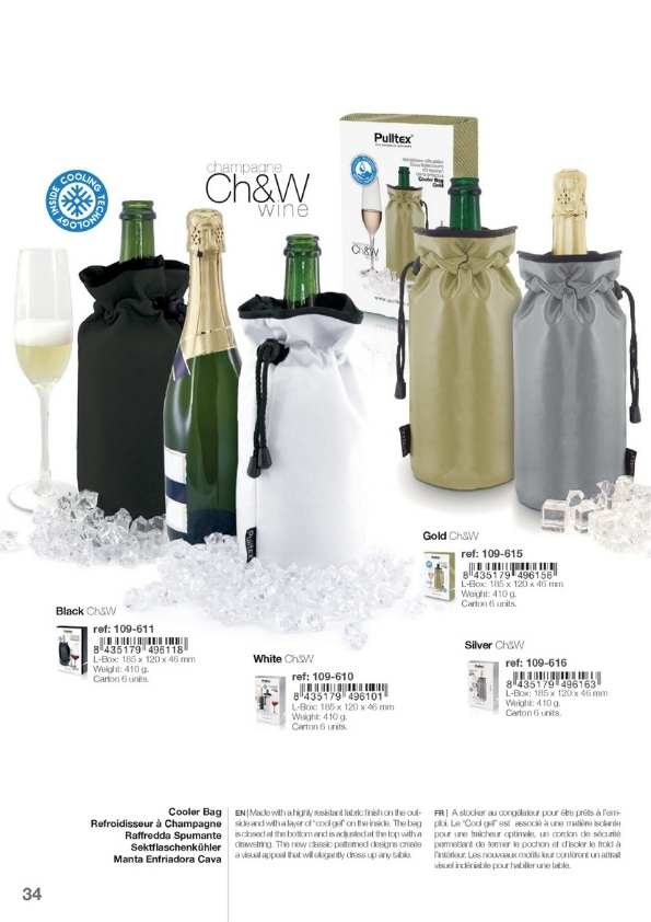 Cubiteras y Bolsas de frío para enfriar las botellas sobre la mesa o para mantener el frío de la botella salida de la nevera durante toda la comida. Disponemos de varios modelos, diseños y personalizaciones muy elegantes. Cubiteras para 1, 2, 4 y 6 botellas. Mantas de frío y IceBag.